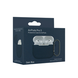Чехол для наушников AirP Pro 3 Silicone Case без лого силикон, темно-синий с карабином