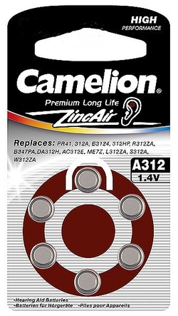 Батарейка Camelion ZA312/ PR41 BL6 воздушно-цинковая для слуховых аппаратов