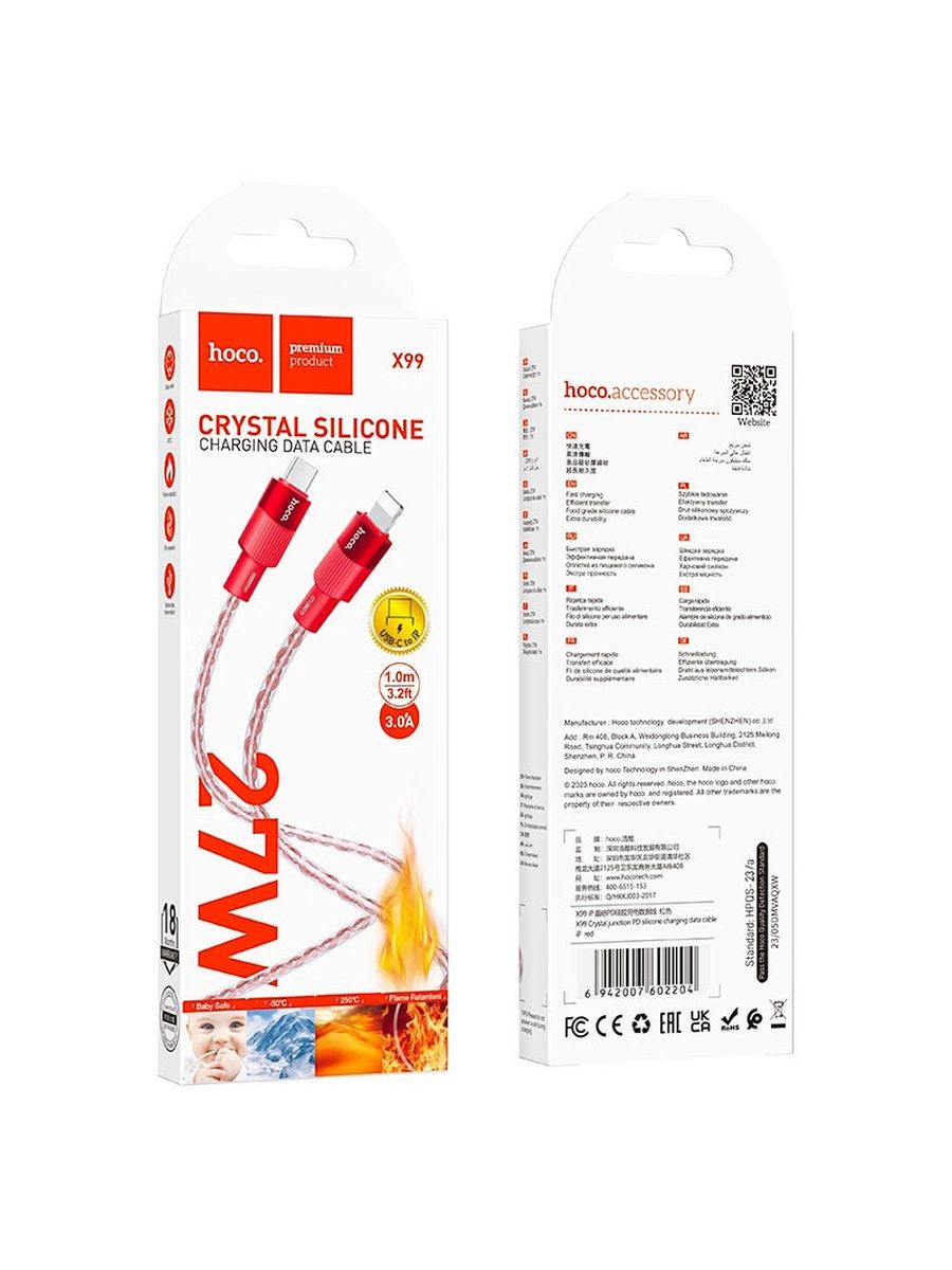 Товар «Кабель Type-C - 8 pin Lightning HOCO X99 силикон красный прозрачный 2.4A 1 м. 20W» добавлен в корзину