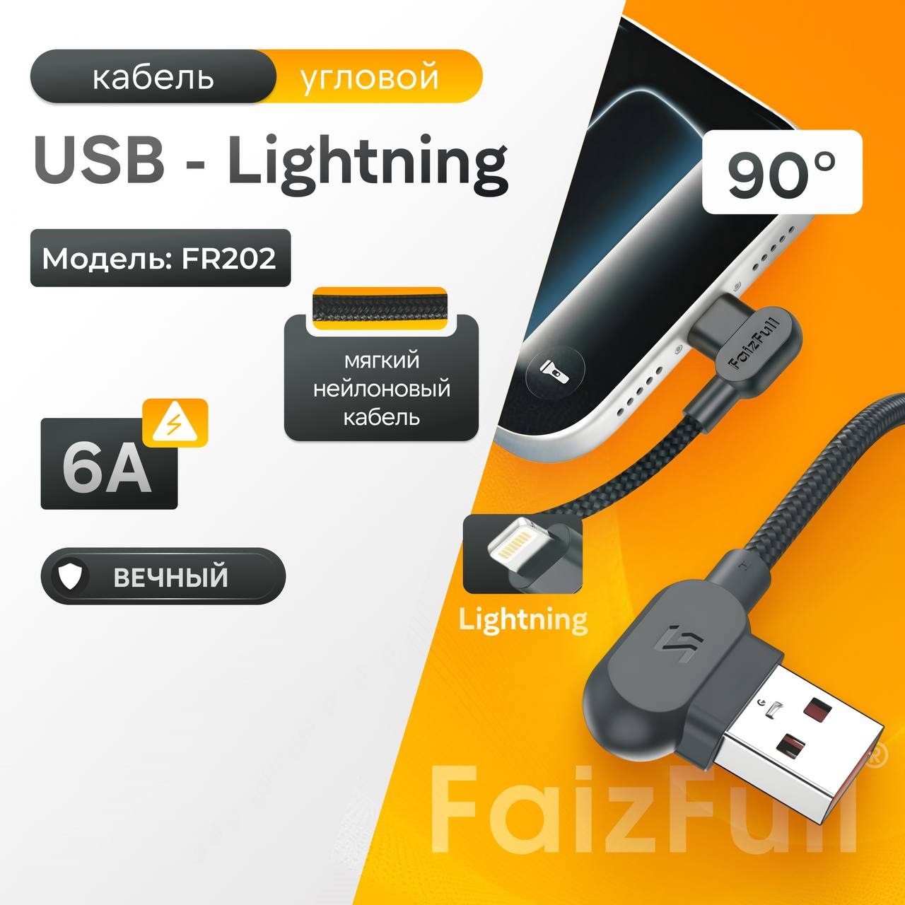 Кабель USB - 8 pin Lightning FaizFull FR202 текстиль черный круглый 6A 1,2 м. угл. штекер