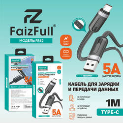 Кабель USB - Type-C FaizFull FR62 текстиль круглый 5A 1 м.