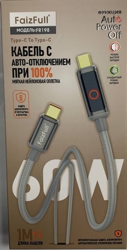 Кабель Type-C-Type-C FaizFull FR198 текстиль круглый 1 м. 60W смарт отключение