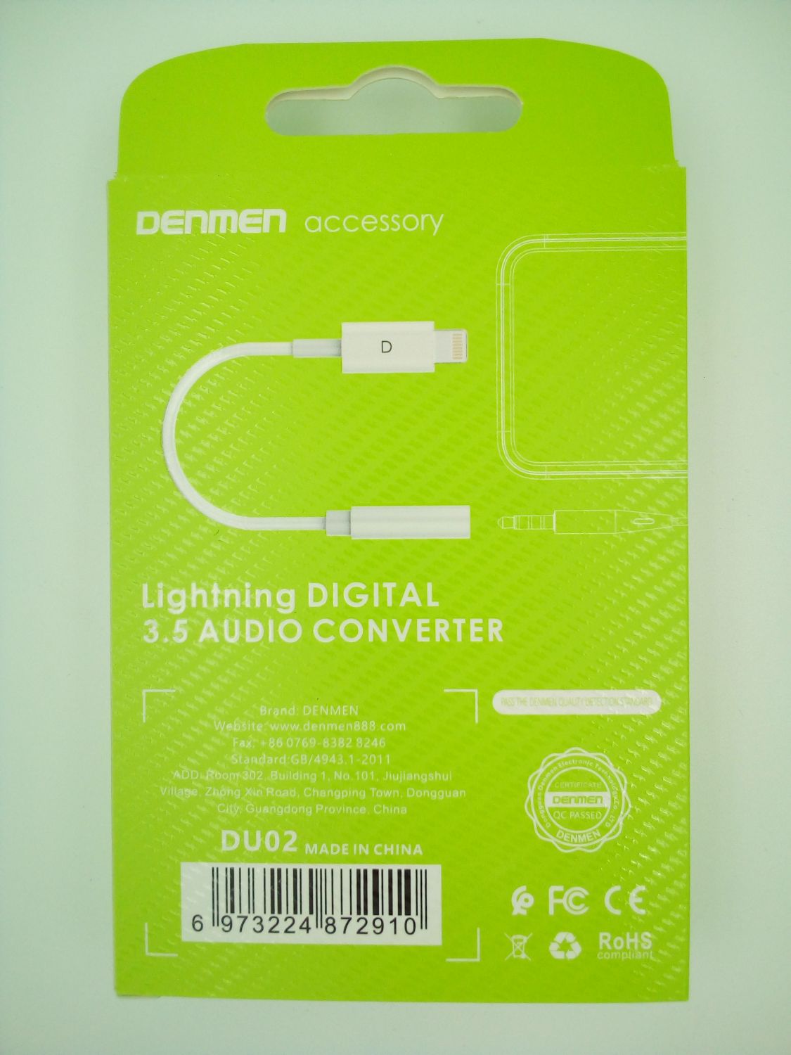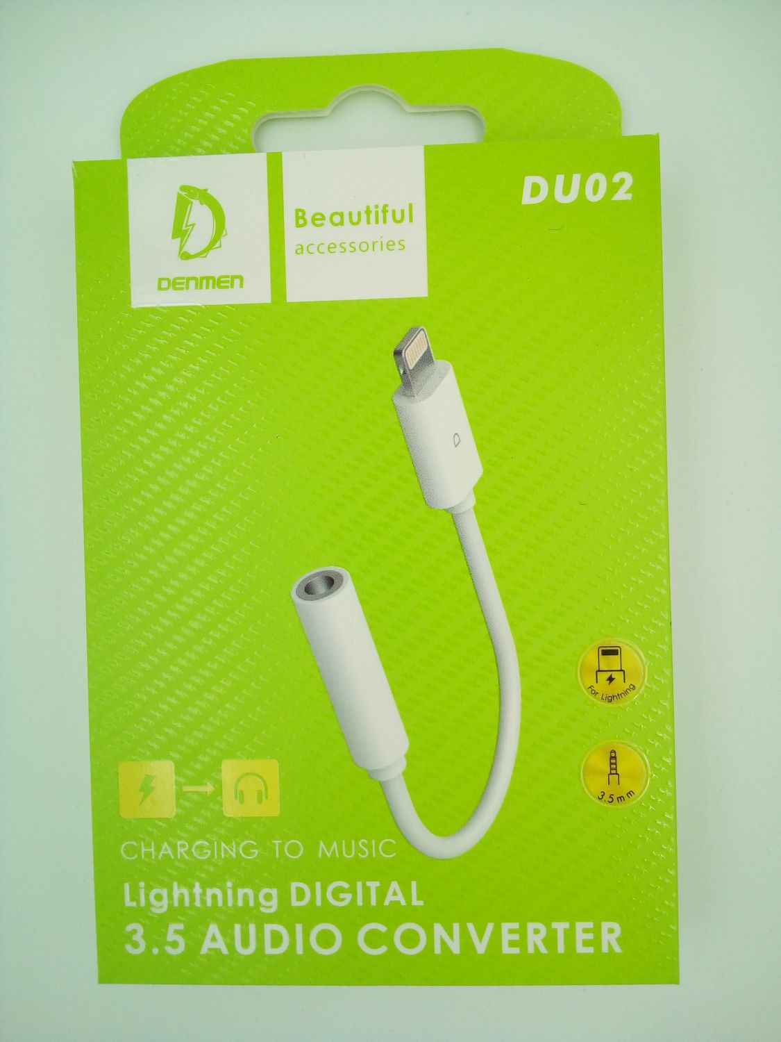 Товар «Переходник 8 pin Lightning - AUX Denmen DU02 белый» добавлен в корзину