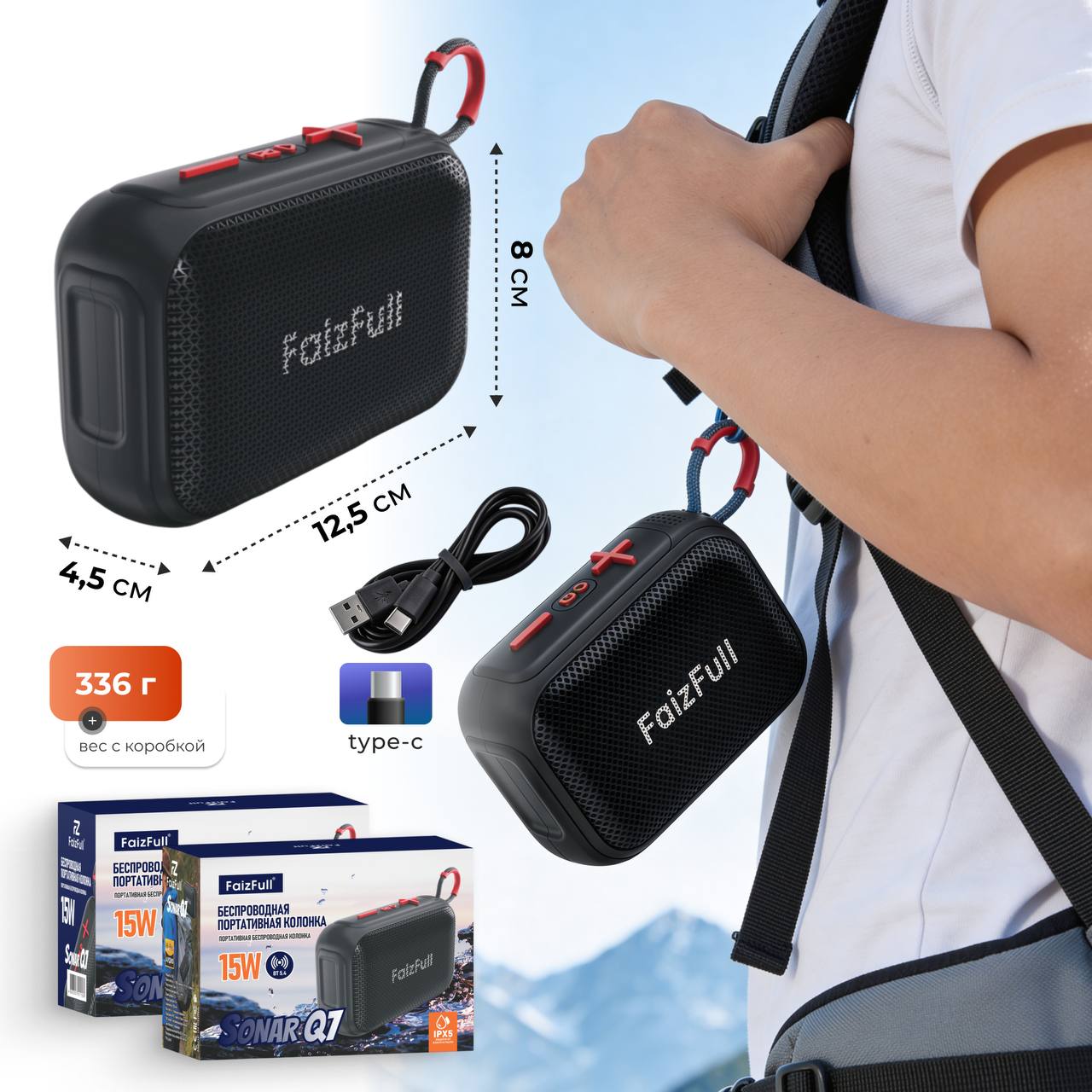 Колонка Бумбокс FaizFull Sonar Q7 TF/AUX/Radio/USB/bluetooth черный