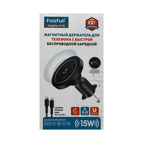 Держатeль автомобильный FaizFull F170 магнитный на решетку черный Magsafe QI