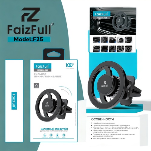 Держатeль автомобильный FaizFull F25 магнитный на решетку черный