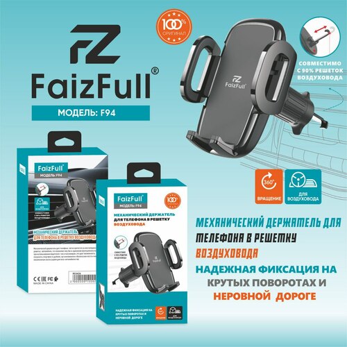 Держатeль автомобильный FaizFull F94 раздвижной на решетку черный