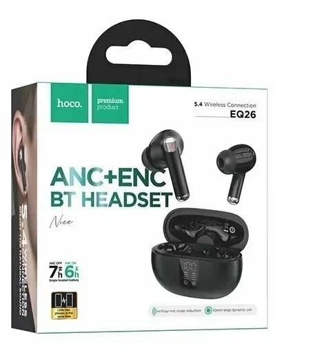 Гарнитура Стерео HOCO EQ26 черный Bluetooth LED дисплей ANC