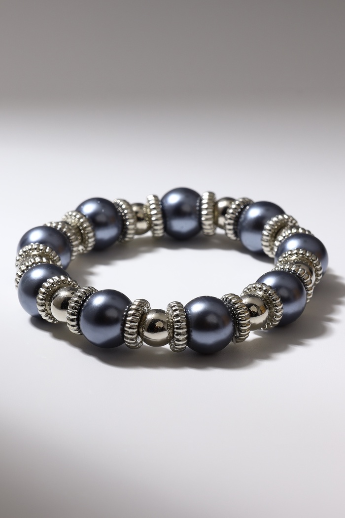 Браслет жемчуг «Бусинка» серый в серебре