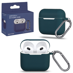 Чехол для наушников AirP 4 Silicone Case без лого силикон, темно-синий с карабином