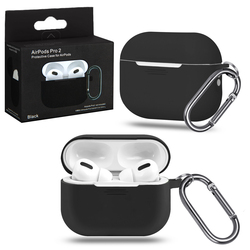 Чехол для наушников AirP Pro 2 Silicone Case без лого силикон, черный с карабином