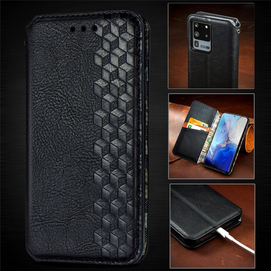 Чехол-книжка Samsung S21 Ultra/S30 Ultra черный горизонтальный с визитницей и силиконовой основой Геометрия Ромбы