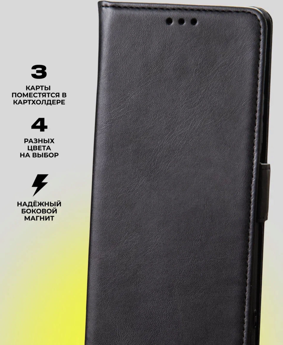 Чехол-книжка Tecno Spark 30 4G черный горизонтальный с магнитом Кожа