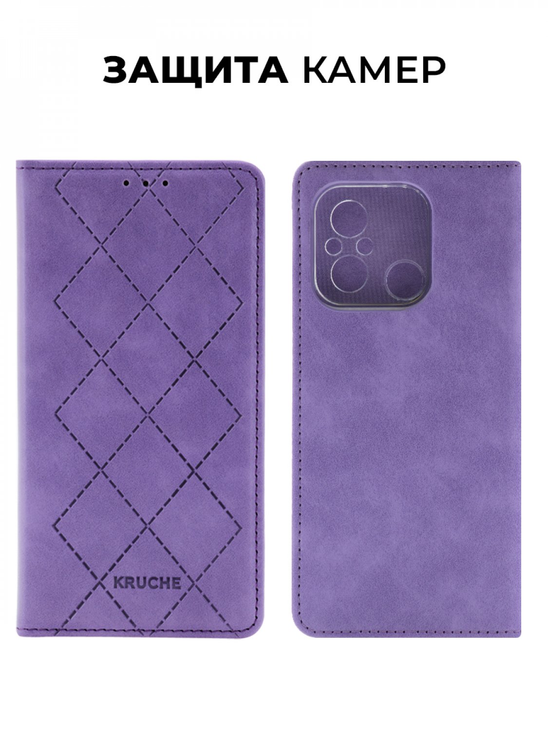 Товар «Чехол-книжка Xiaomi Poco C55/Redmi 12C лиловый горизонтальный Kruche Геометрия Ромбы» добавлен в корзину