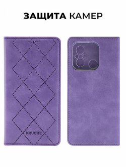 Чехол-книжка Xiaomi Poco C55/Redmi 12C лиловый горизонтальный Kruche Геометрия Ромбы