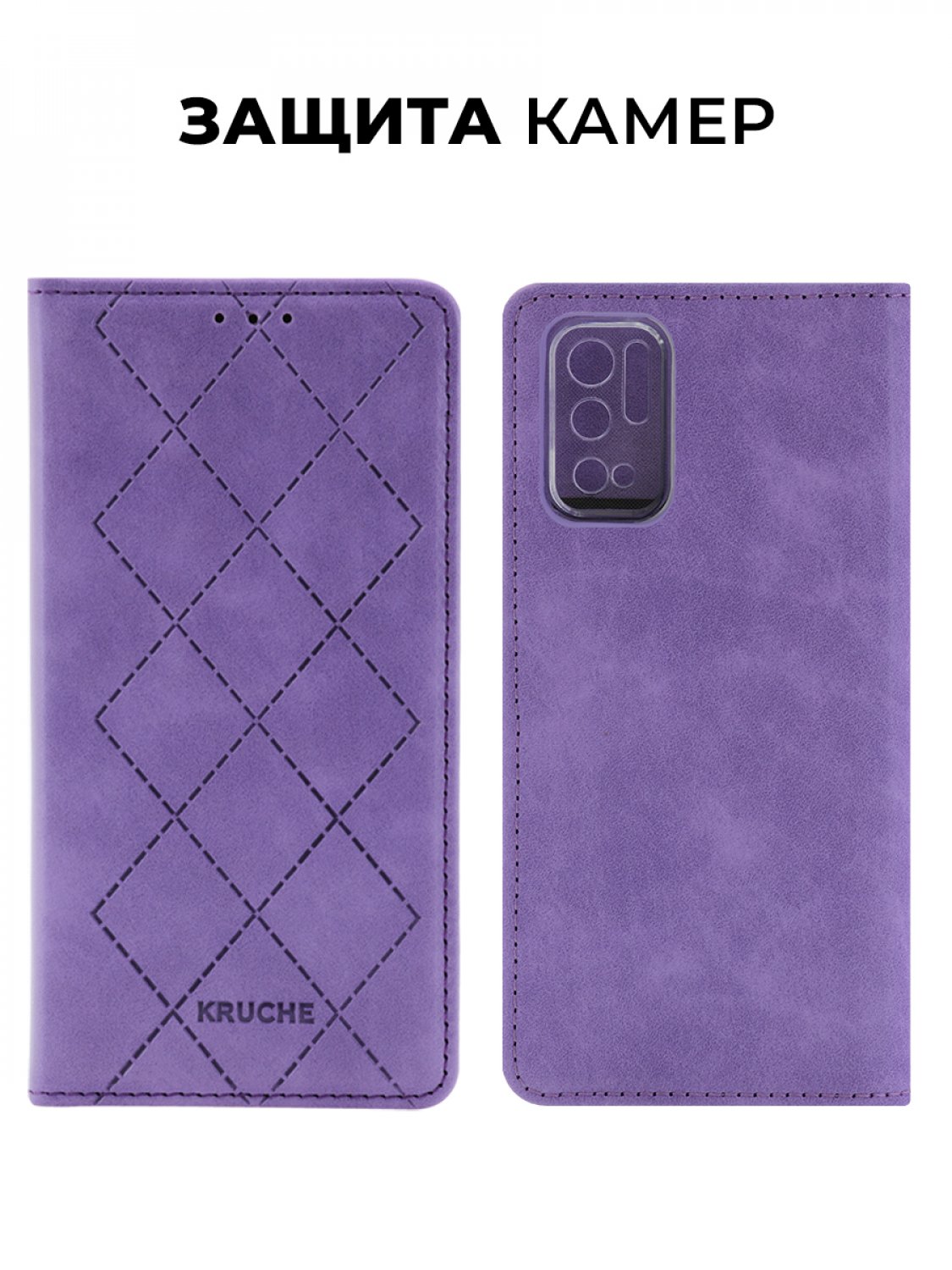 Товар «Чехол-книжка Xiaomi Poco M3 Pro/Redmi Note 10T/Note 10 5G лиловый горизонтальный Kruche Геометрия Ромбы» добавлен в корзину