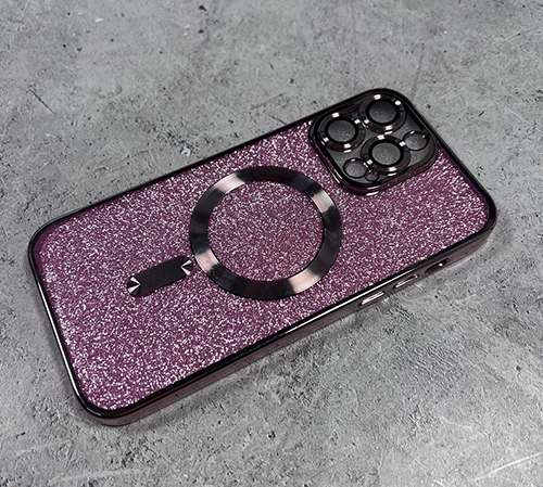 Накладка Apple iPhone 11 сиреневый с блестками и стеклами на камере силикон SafeMag