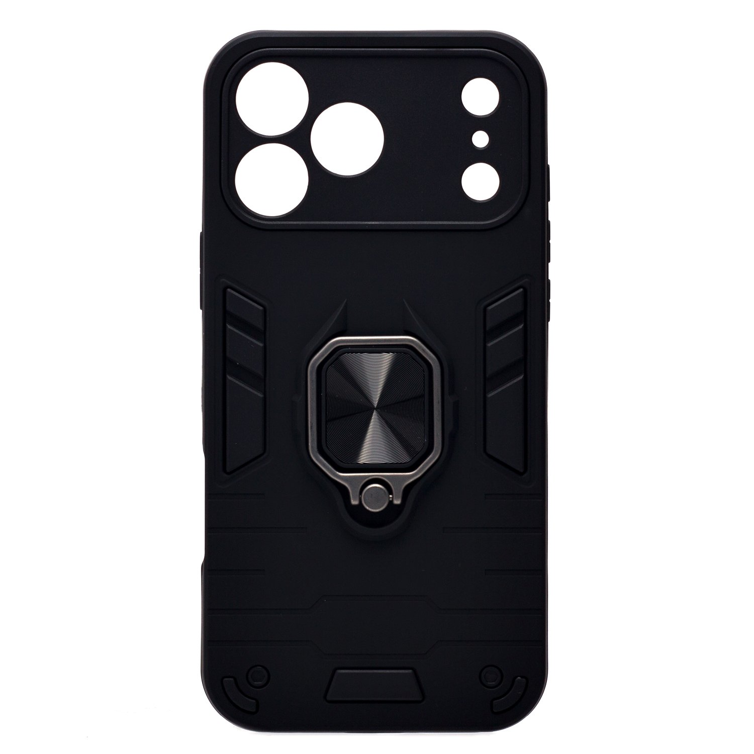 Накладка Apple iPhone 17 Pro Max черный силикон+пластик Противоударный кольцо-подставка + магнитный держатель
