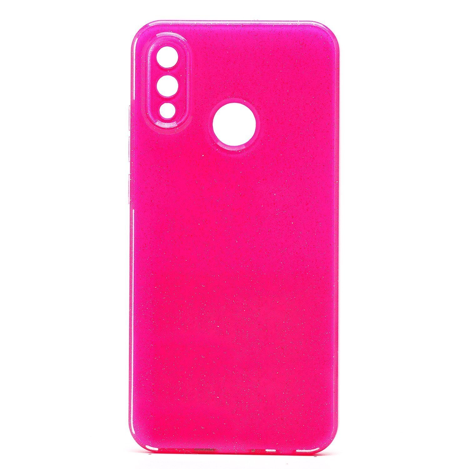 Накладка Huawei Honor 10 Lite/P Smart 2019 ярко-розовый с защитой камеры силикон+пластик Блестки