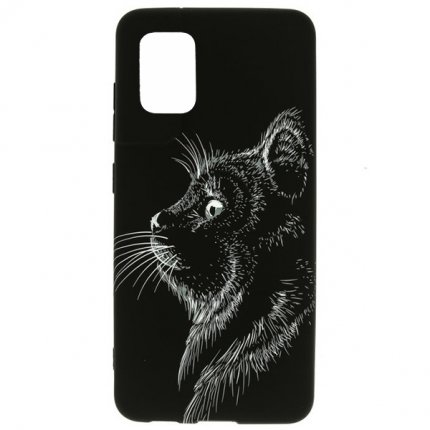 Накладка Samsung A22/M22/M32 черный с защитой камеры силикон Helsen Животные Кошки Кот в профиль