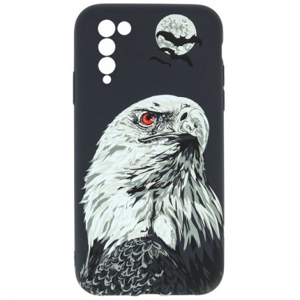 Накладка Samsung S20 FE черный с защитой камеры силикон Helsen Животные Орел и летучие мыши на фоне луны
