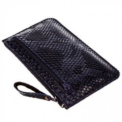 Сумочка на молнии 135*85мм синий под кожу змеи