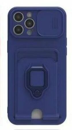 Накладка Apple iPhone 12/ 12 Pro темно-синий с визитницей и защитой камеры силикон Кольцо-подставка + магнитный держатель Раздвижное окно