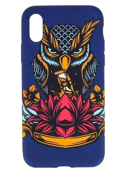 Накладка Apple iPhone X/ Xs темно-синий фосфорный силикон Luxo Животные Сова с красным цветком