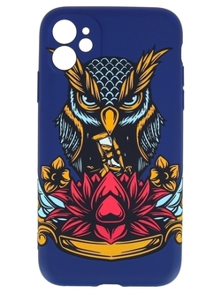 Накладка Samsung S20 FE темно-синий фосфорный силикон Helsen Животные Сова с красным цветком