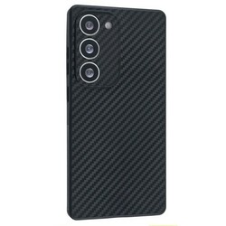 Накладка Samsung A25 черный под кожу силикон+пластик Карбон с лого