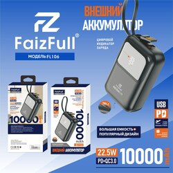 Внешний аккумулятор 10000 mAh FaizFull FL106 USB+Type-C черный LED дисплей