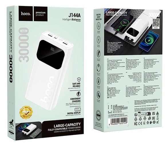 Внешний аккумулятор 30000 mAh HOCO J144A 2USB+Type-C белый LED дисплей