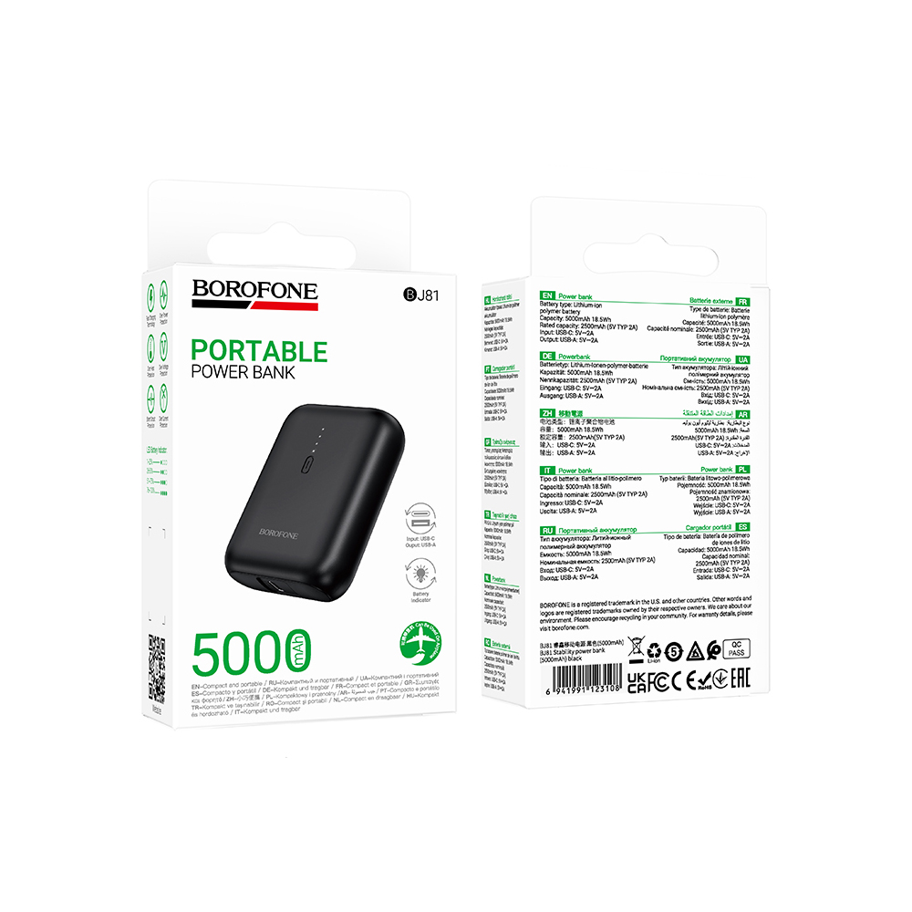 Внешний аккумулятор 5000 mah Borofone BJ81 USB+Type-C черный