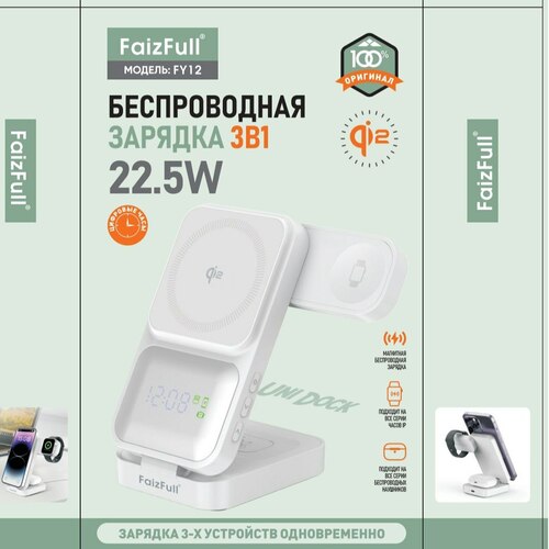 Беспроводное зарядное устройство белый 22.5W LED дисплей FaizFull FY12