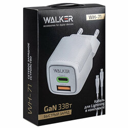 Сетевое зарядное устройство Walker WH-71 1USB+USB Type-C белый Lightning 3.0A 33W GaN