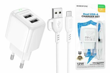 Сетевое зарядное устройство Borofone BAS41A 2USB белый Micro USB 2A