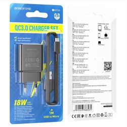 Сетевое зарядное устройство Borofone BA72A 1USB черный Micro USB 3A 18W