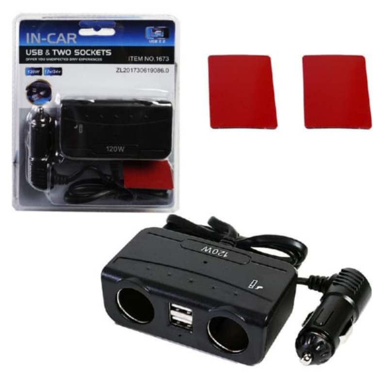 Разветвитель прикуривателя 2 гнезда с проводом 2USB OLESSON 1673