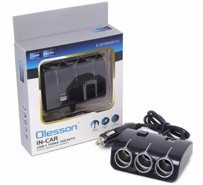 Разветвитель прикуривателя 3 гнезда 2USB OLESSON 1506
