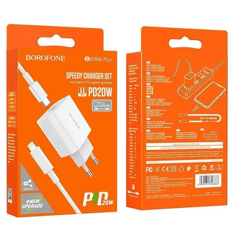 Сетевое зарядное устройство Borofone BA81A USB Type-C белый Lightning 3A 20W