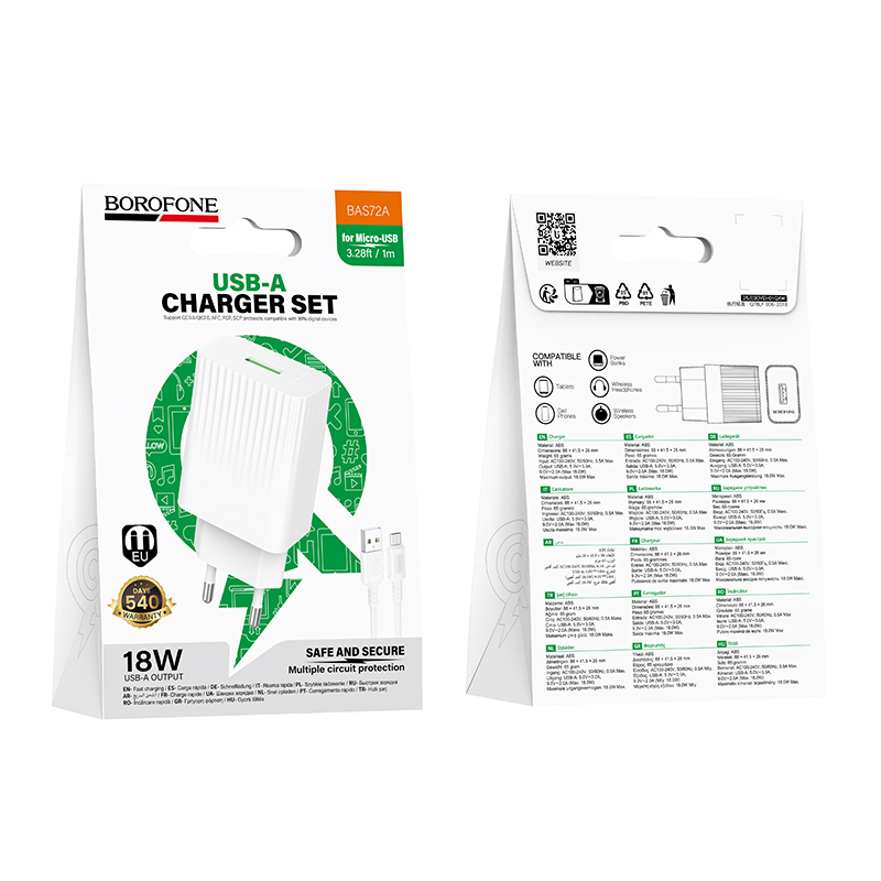 Товар «Сетевое зарядное устройство Borofone BAS72A 1USB белый 18W» добавлен в корзину