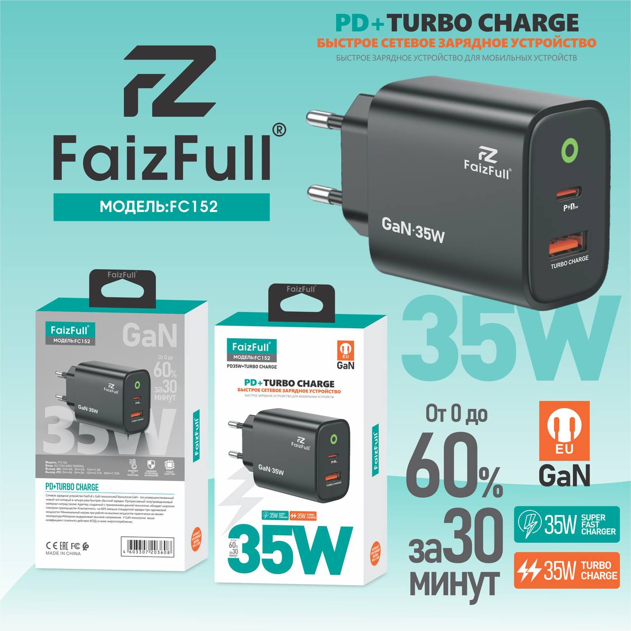 Сетевое зарядное устройство FaizFull FC152 1USB+USB Type-C 35W GaN