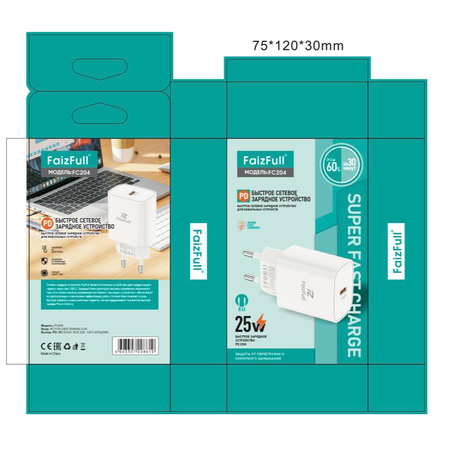 Сетевое зарядное устройство FaizFull FC204 USB Type-C белый Type-C 25W