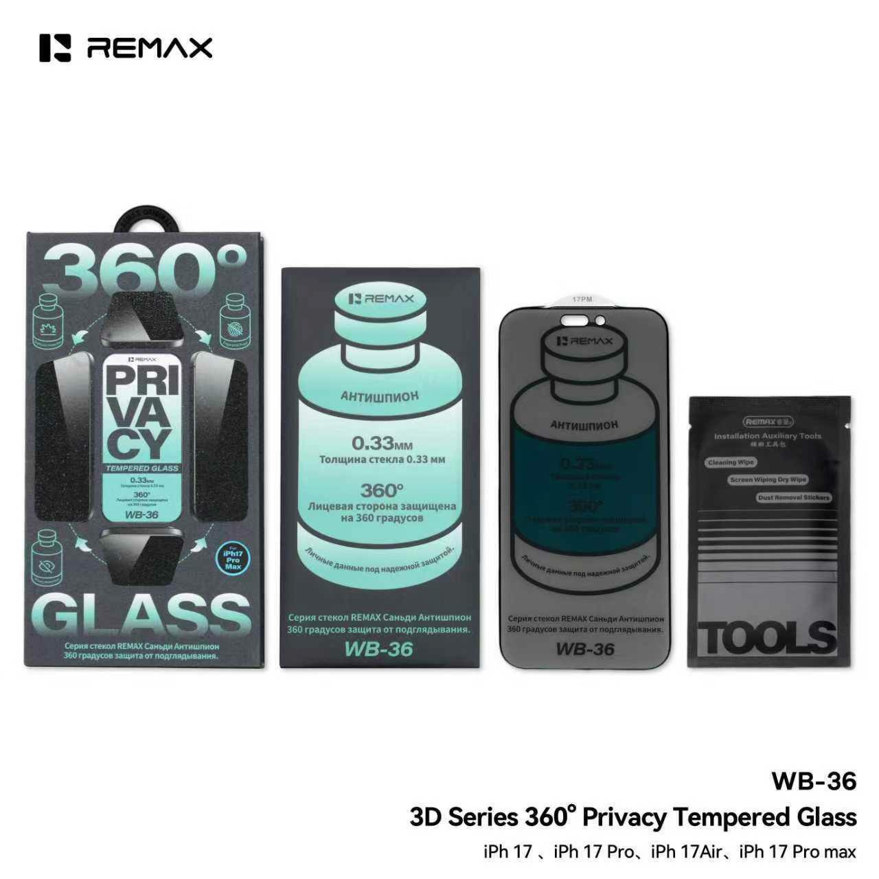 Товар «Защитное стекло Apple iPhone 13/13 Pro/14/16e черный 3D антишпион 360° REMAX WB-37» добавлен в корзину