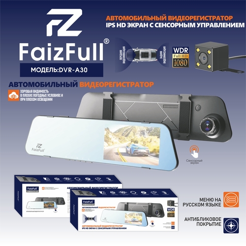 Автомобильный видеорегистратор в зеркале FaizFull DVR-A30 2 камеры сенсорный