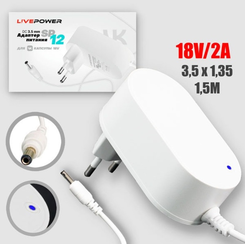 Блок питания Live-Power SP12 18V 2A 3,5*1,35 мм 1,5м для VK Капсула 1,5м черный