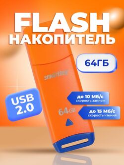 Флешка USB SmartBuy 64GB Easy USB 2.0, оранжевый