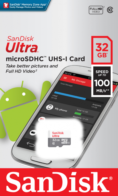 Карта памяти micro SD Sandisk 32GB Класс 10 Ultra 120 Mb/s без адаптера