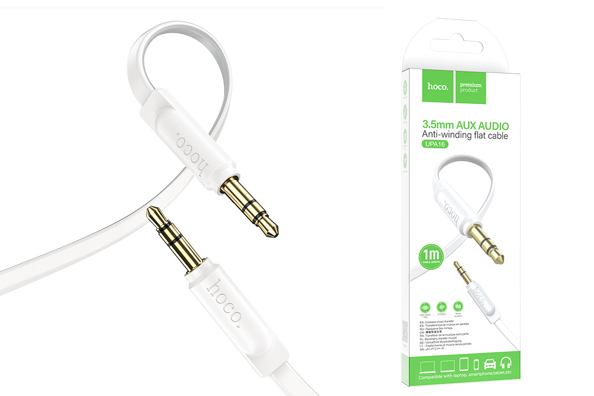 Кабель Jack 3.5(п) - Jack 3.5(п) HOCO UPA16 силикон белый плоский 2 м.
