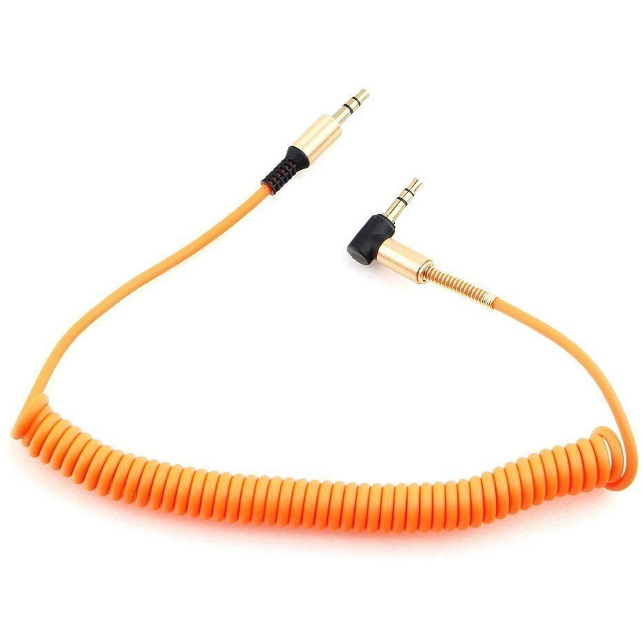 Кабель Jack 3.5(п) - Jack 3.5(п) No brand Пружина пвх оранжевый круглый 1 м. угл. штекер с пружиной